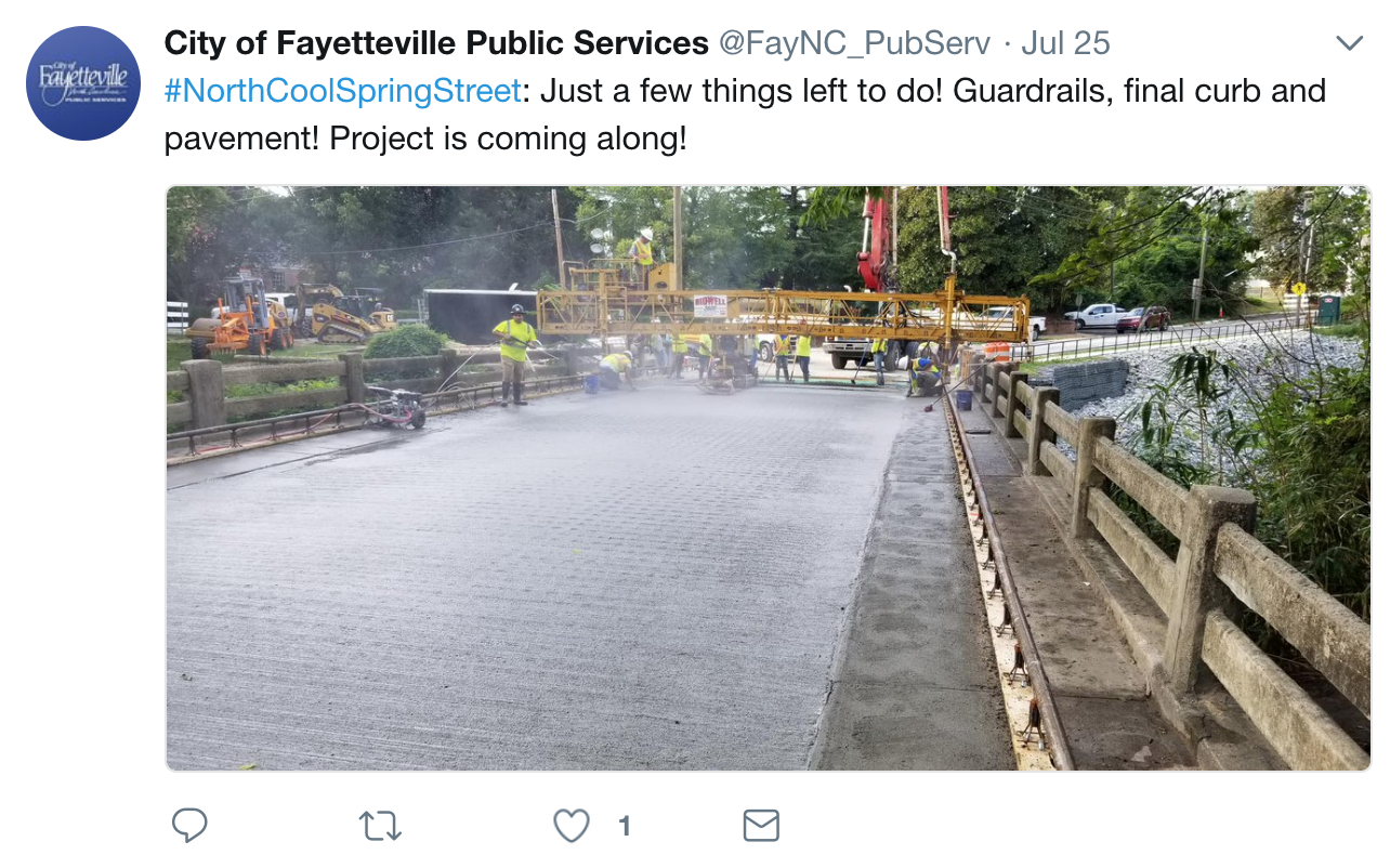 See here how the City of Fayetteville gave updates on a public works project: