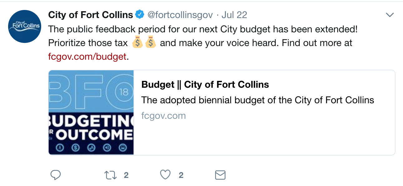 Check out how the City of Fort Collins used Twitter the public of an extended feedback period: